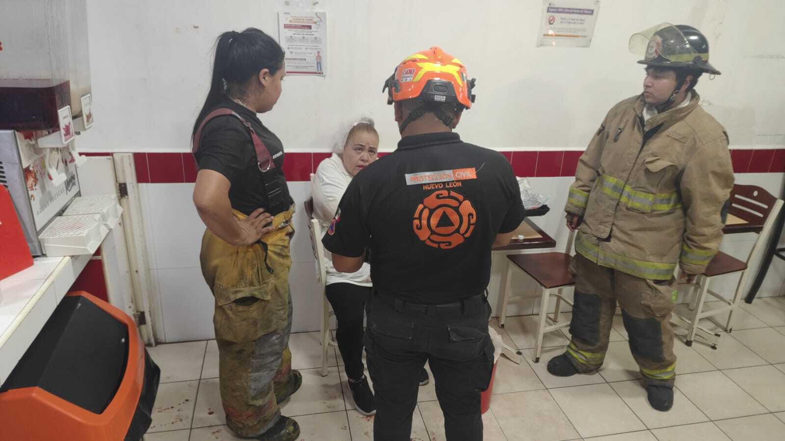 Elementos de Protección Civil Nuevo León rescataron a una mujer de 53 años en un establecimiento comercial.
