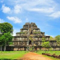 Situada en la provincia de Preah Vihear, en Camboya, la Pirámide de Koh Ker es una joya arqueológica que representa la grandeza del antiguo Imperio Jemer. Construida en el siglo X d.C., durante el reinado del rey Jayavarman IV, esta pirámide escalonada se destaca por su impresionante arquitectura y su ubicación en medio de la densa selva camboyana. Con una altura de aproximadamente 36 metros, la Pirámide de Koh Ker es una de las estructuras más imponentes del complejo arqueológico de Koh Ker y ofrece impresionantes vistas de la selva circundante desde su cima. Los visitantes pueden acceder al sitio en transporte público desde la ciudad de Siem Reap y luego tomar un corto viaje en tuk-tuk hasta el complejo arqueológico, donde pueden explorar la pirámide y otros templos y santuarios antiguos.