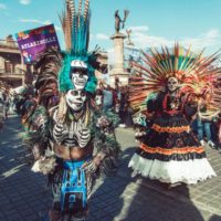 Máscaras, disfraces, maquillajes y danza de calaveras predominaron en este recorrido de poco más de 1 kilometro, que inició en calle 5 de mayo en recorrido por calle Zaragoza y terminó en Explanada de los héroes.