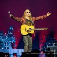La intensidad subió con los primeros acordes de “Corazón espinado”, tema que originalmente grabaron junto a Carlos Santana. El público se puso de pie, bailando y cantando al ritmo de esta emblemática canción. Momentos después, el espectáculo alcanzó un punto reflexivo cuando Fher, fiel a su estilo, se dirigió al público: