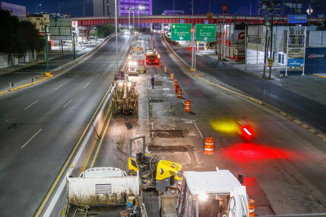 Brigadas de la Secretaría de Servicios Públicos de Monterrey desplegaron un operativo de mantenimiento integral sobre la avenida Gonzalitos durante la noche de este lunes y la madrugada del martes. Los trabajos se concentraron principalmente en el cruce con la avenida Constitución, donde una cuadrilla de aproximadamente 70 trabajadores realizó labores de rehabilitación de la carpeta asfáltica y mejoramiento de la imagen urbana en una de las arterias con mayor flujo vehicular de la zona metropolitana.