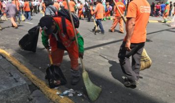 Previo al desfile realizado también en el primer cuadro de la ciudad, cerca de 85 trabajadores comenzaron con el barrido manual de calles, e incluso iban al final de todos los contingentes levantando los desechos, y como el resto de los participantes, recibieron aplausos y vítores.