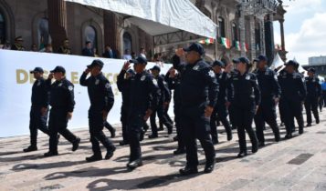 Los elementos municipales estuvieron en el contingente que recorrió las calles y avenidas del centro de la ciudad, iniciando en la Explanada del Palacio de Gobierno y terminando en la Alameda Mariano Escobedo.
