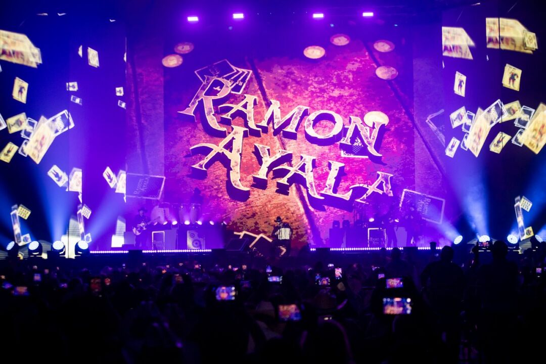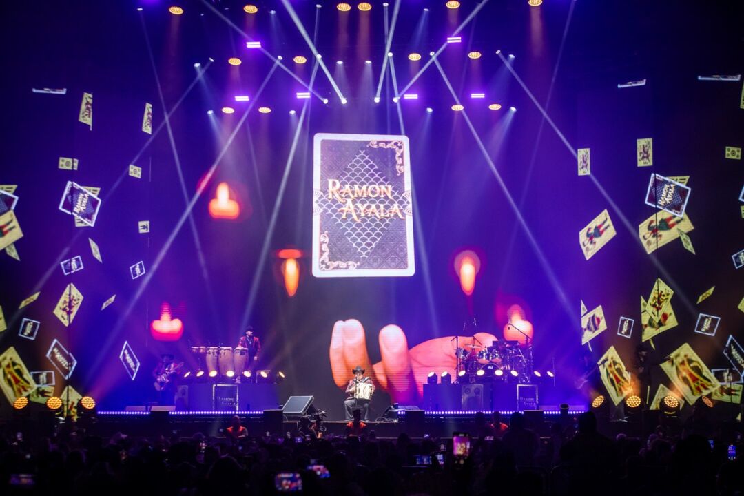 Ataviado con un traje norteño negro y un saco rojo brillante, Ramón Ayala apareció acompañado de sus inseparables Bravos del Norte, desatando la algarabía en cada rincón del recinto. “¿Cómo está mi gente? Mis paisanos de aquí de Monterrey, la cuna de la música norteña. Estamos muy contentos de estar con todos ustedes por acá esta noche. Ojalá se lleven un grato recuerdo de nosotros. Aquí vamos a dar para que bailen y canten, y hagan todo lo que ustedes quieran”, expresó emocionado en su mensaje de bienvenida.