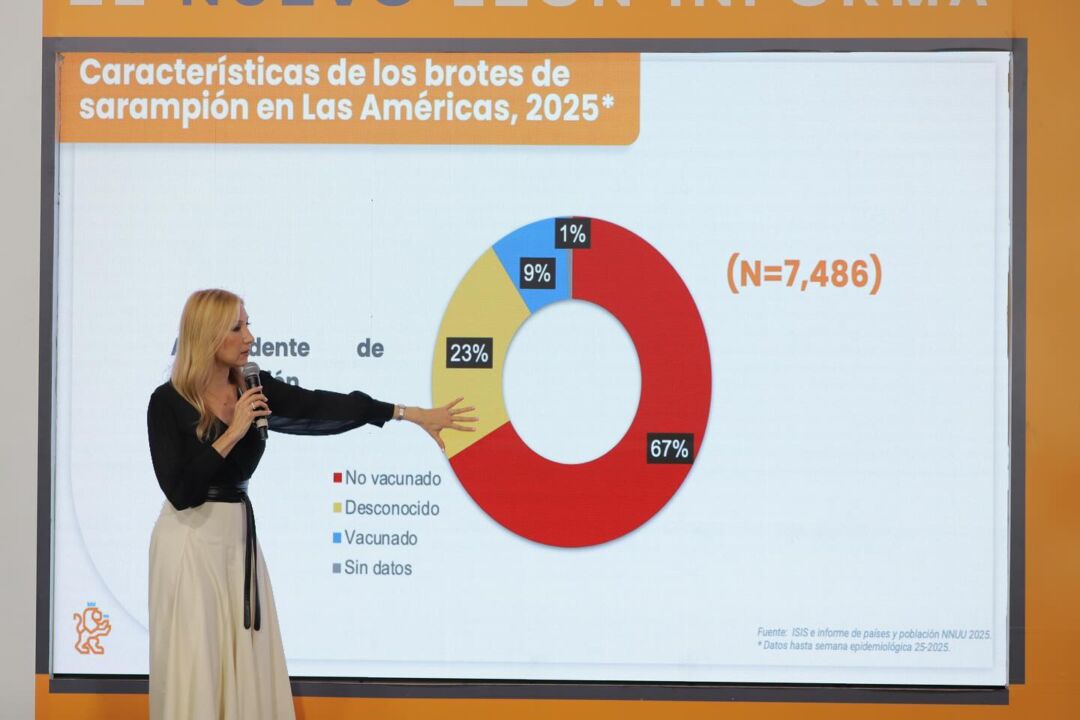 La funcionaria de salud, señaló que el riesgo de un brote por sarampión en la entidad es bajo, debido a que Nuevo León cuenta con una cobertura de vacunación del 90%.