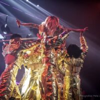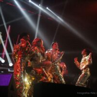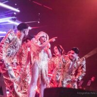 La producción del concierto fue impresionante, con múltiples cambios de vestuario que evocaron las décadas de los 80 y 90. Uno de los momentos más esperados fue la interpretación de «La maldita primavera», donde Yuri, ataviada con un vestido rojo adornado con grandes rosas, hizo que el público estallara en ovaciones. La fiesta continuó con temas como «Hombres al borde de un ataque» y su etapa «Madonnesca», que incluyó canciones como «Sabes lo que pasa».